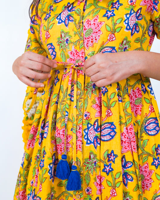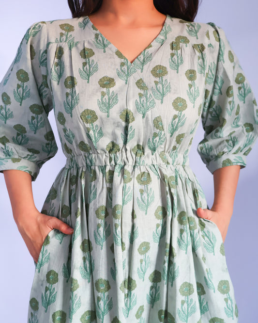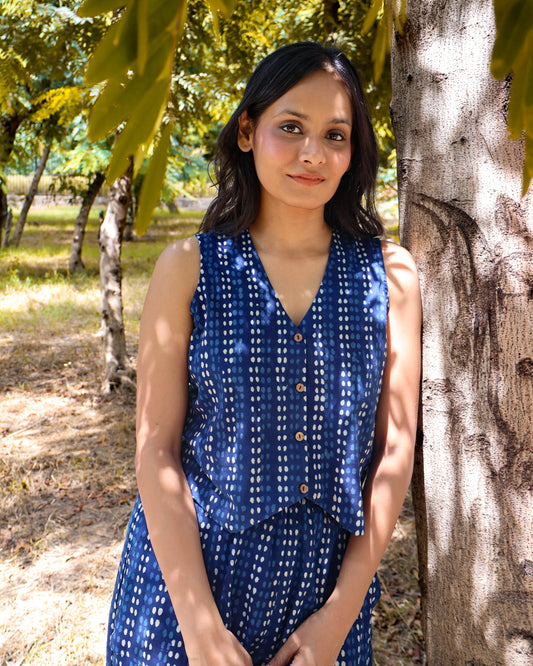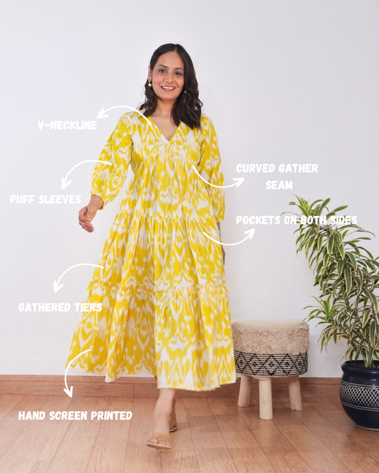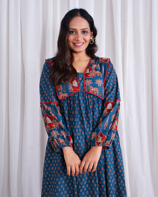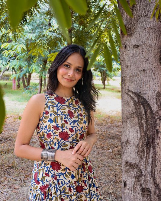 Zoey Indigo HandBlock Dabu Print Tiered Midi Dress