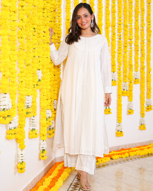 June Indigo Dabu HandBlock Stripes Print Cotton Kurta Set