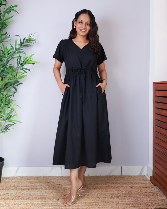 June Indigo HandBlock Dabu Stripes Print Cotton Wrap Dress