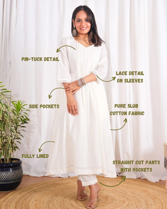 Chandramukhi White Cotton Lurex Kurta Set