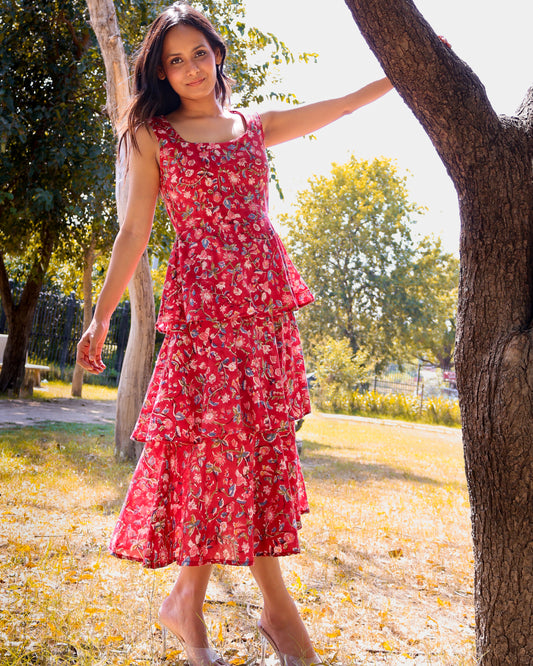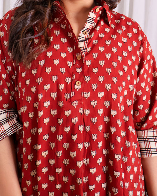 Tia Red Bagru HandBlock Print Cotton Kurta Set