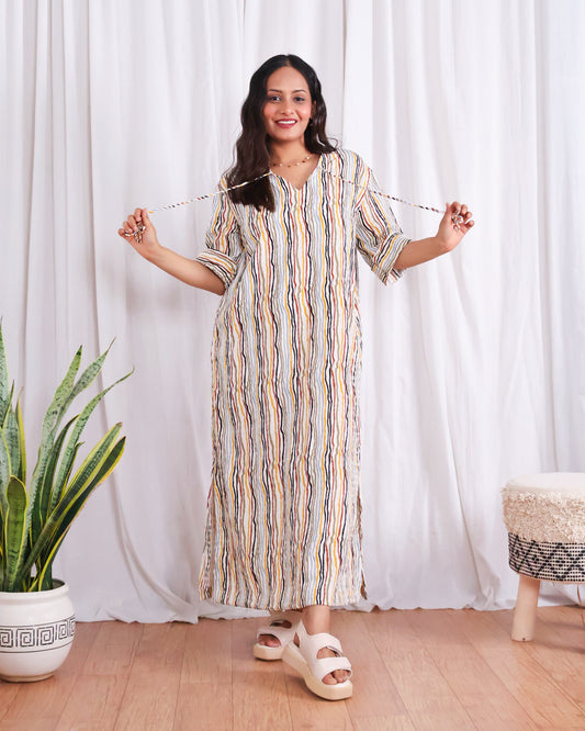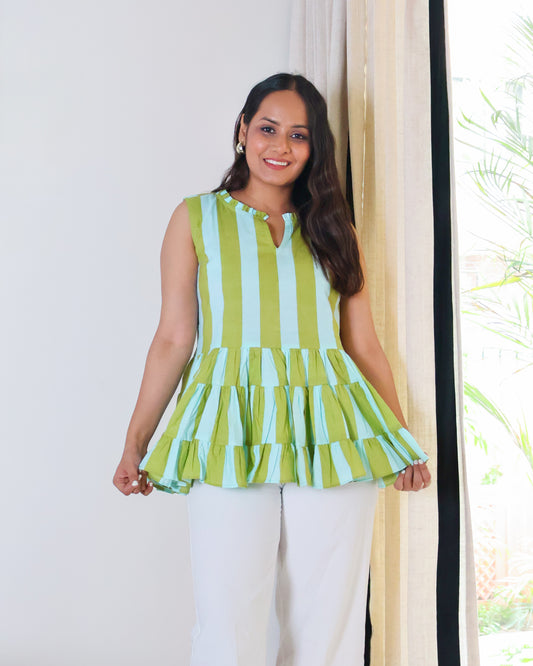Faith Striped HandBlock Print Collared Peplum Cotton Top
