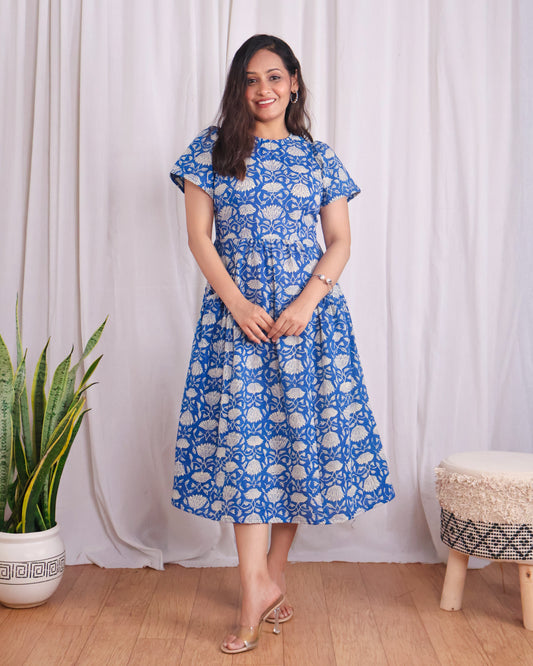 Kira Indigo Dabu HandBlock Print Tiered Short Dress