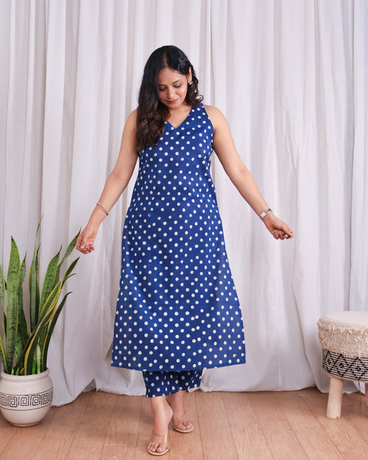 Stella Indigo HandBlock Dabu Print Cotton Kurta Set