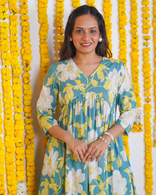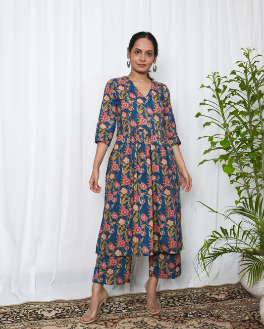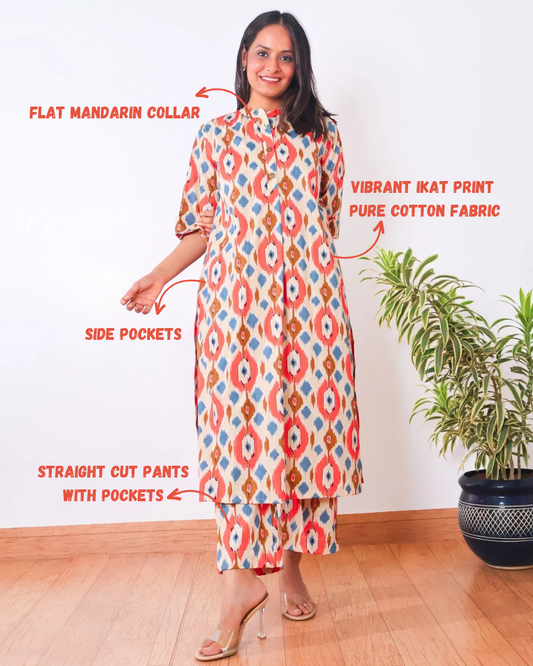 Kavya Blue Ikat Print Short Cotton Kurta Set