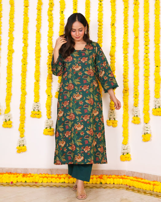 Tia Red Bagru HandBlock Print Cotton Kurta Set
