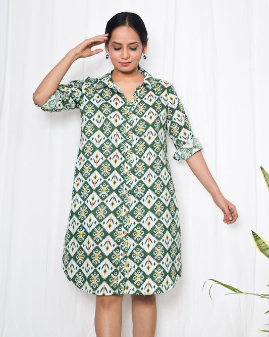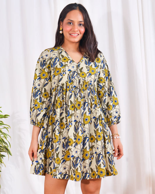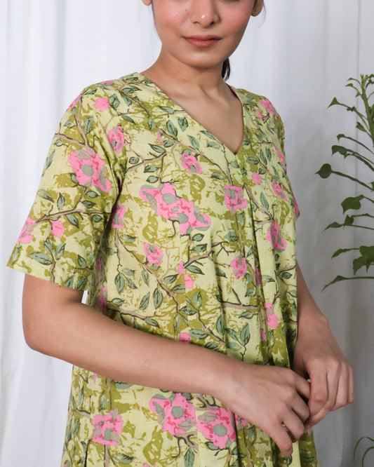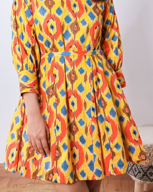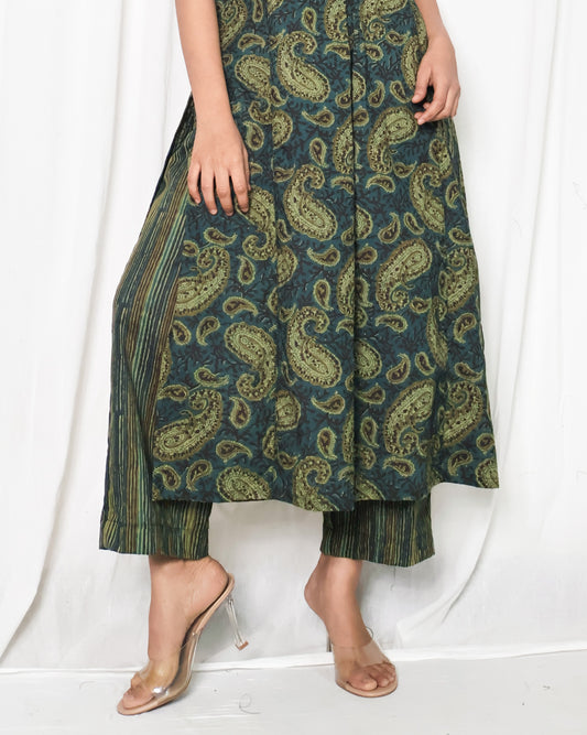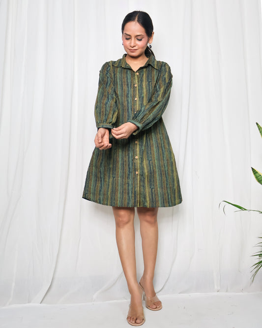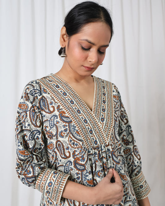 Faith Striped HandBlock Print Collared Peplum Cotton Top