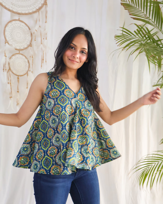 Molly Fit-and-Flare Ajrakh Cotton Dress