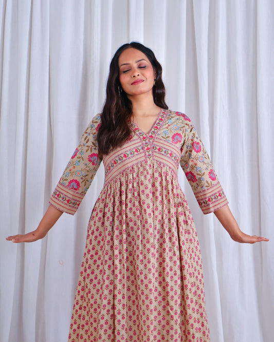 Zoey Indigo HandBlock Dabu Print Tiered Midi Dress