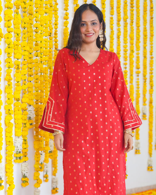Tia Red Bagru HandBlock Print Cotton Kurta Set
