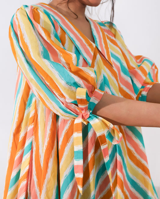 June Indigo HandBlock Dabu Stripes Print Cotton Wrap Dress