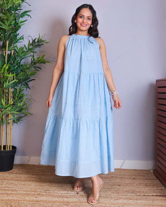 Stella Indigo Polka HandBlock Dabu Print Cotton Maxi Dress