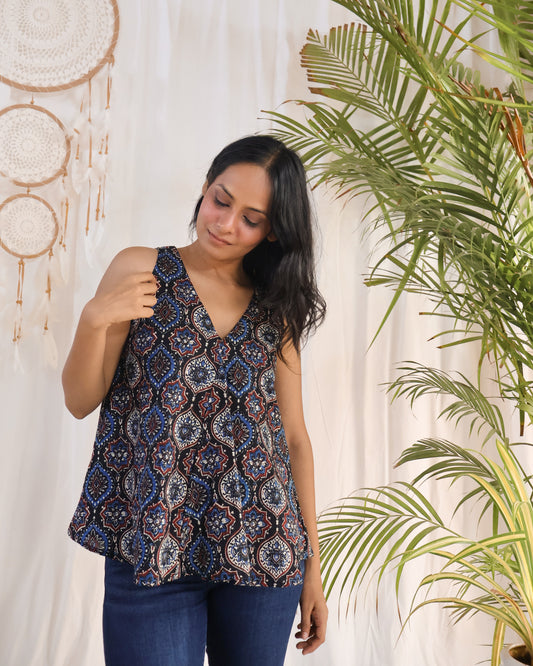 Sarah Striped HandBlock Print Wrap-style Cotton Top