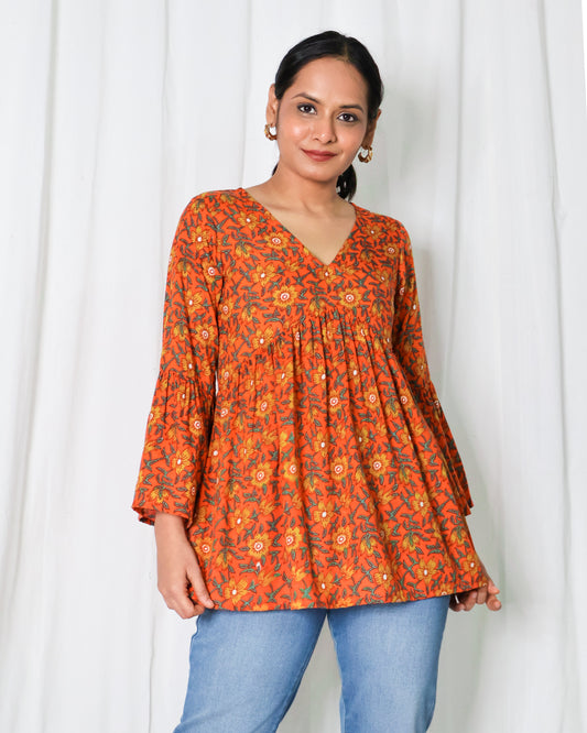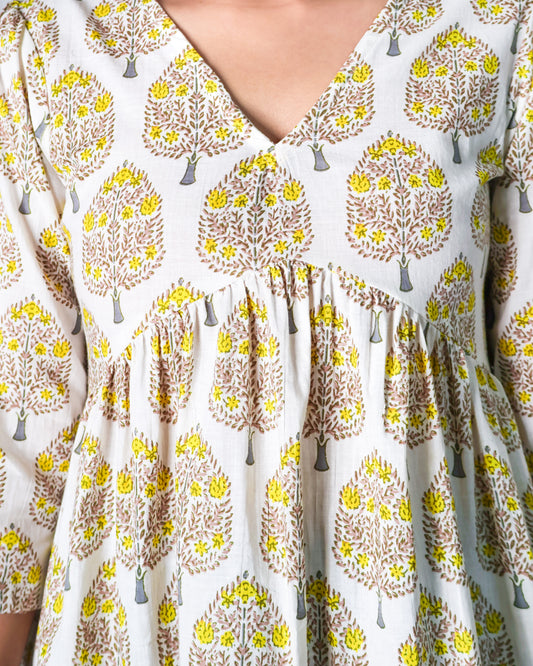 Faith Striped HandBlock Print Collared Peplum Cotton Top