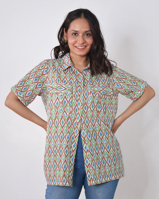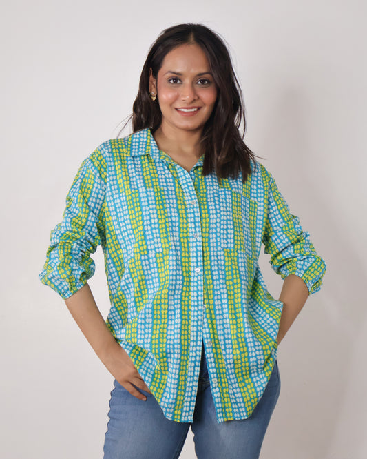 Sarah Red Polka HandBlock Bagru Print Cotton Shirt