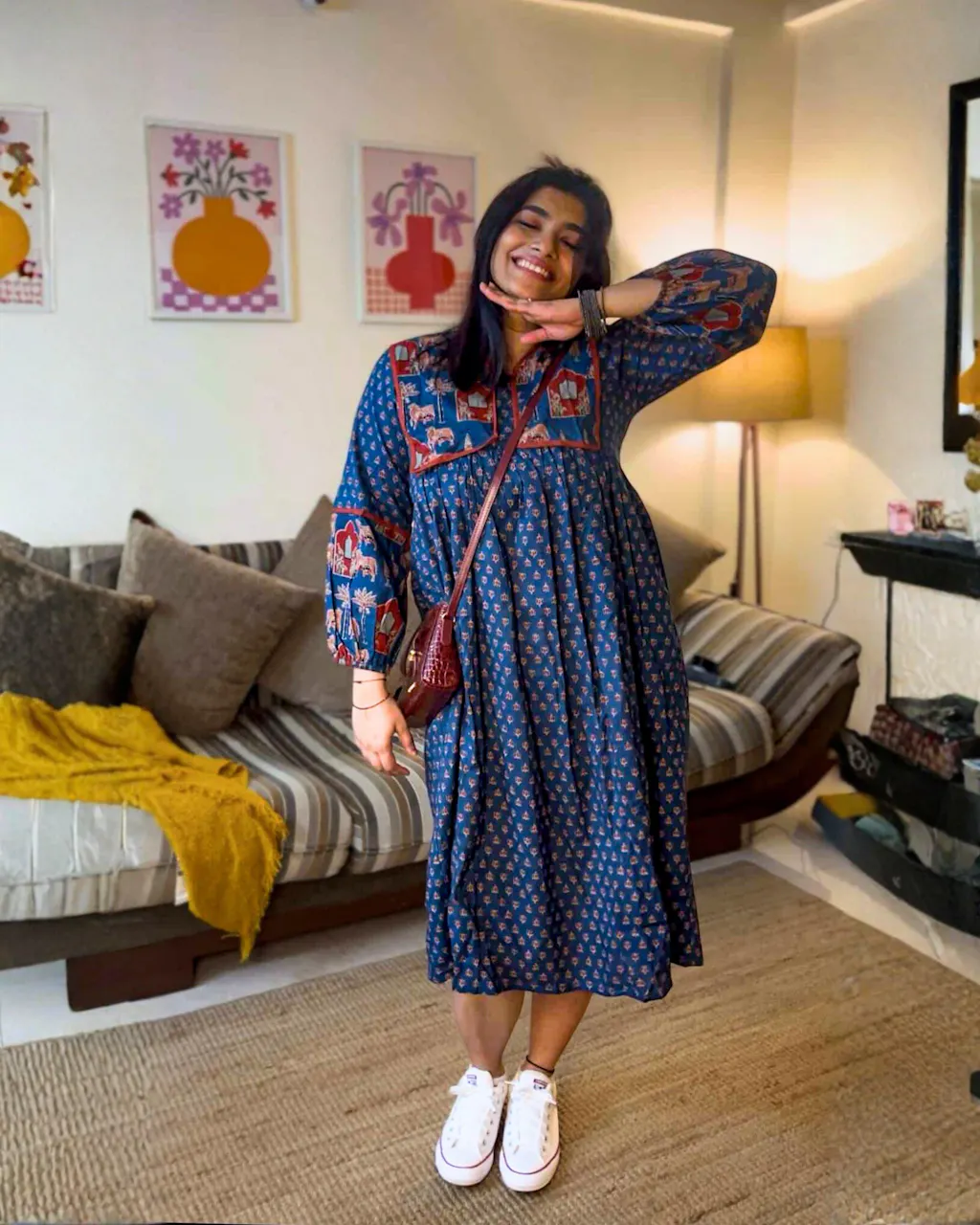 This dress is all about effortless style. I love how it makes me look polished without any effort. The cotton fabric is breathable and perfect for Indian weather.