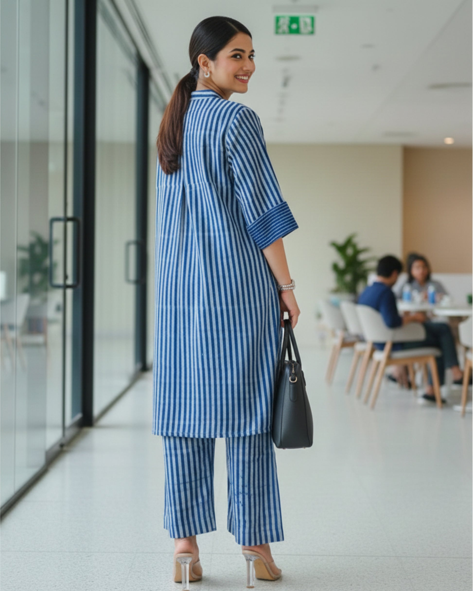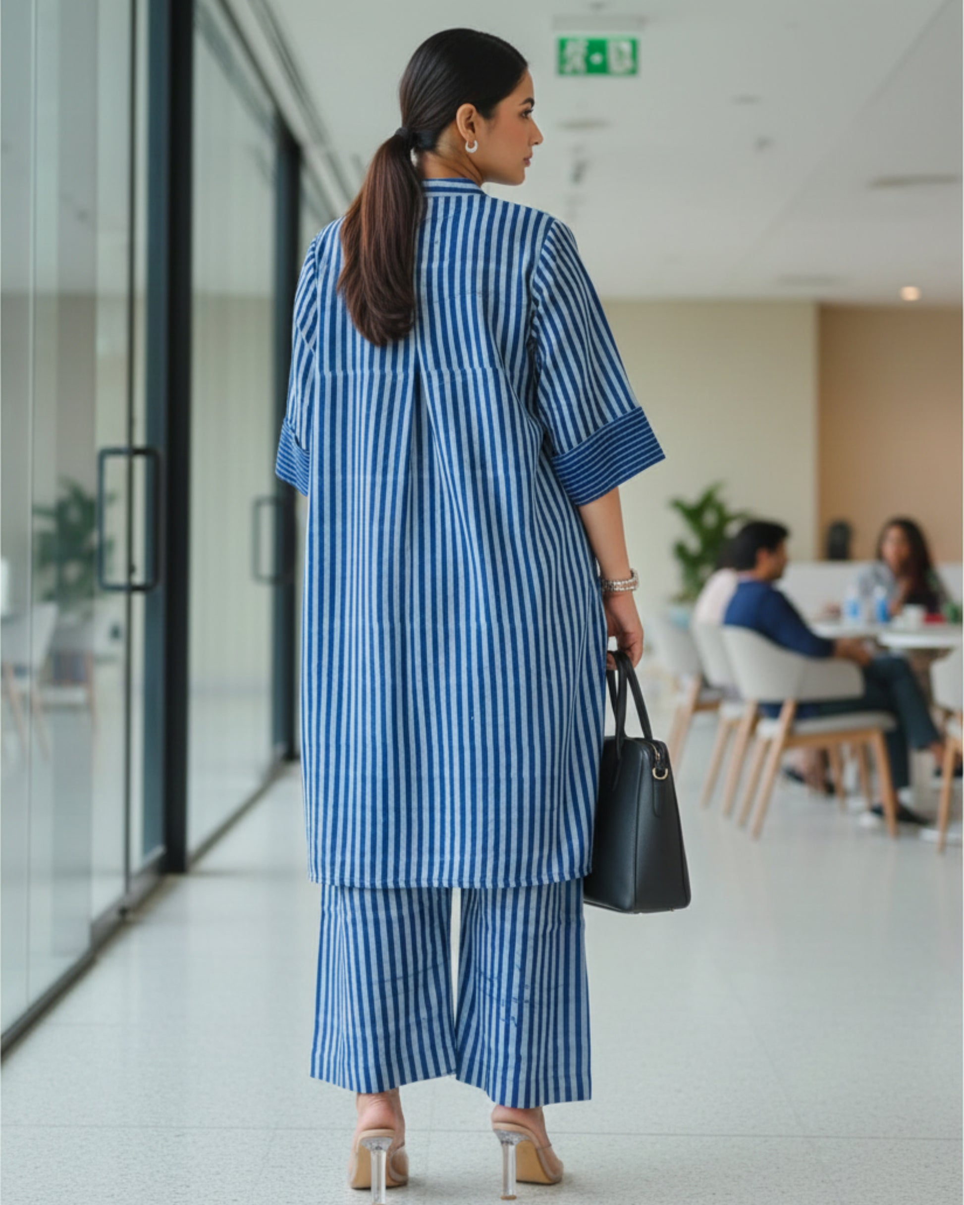 June Indigo Dabu HandBlock Stripes Print Cotton Kurta Set