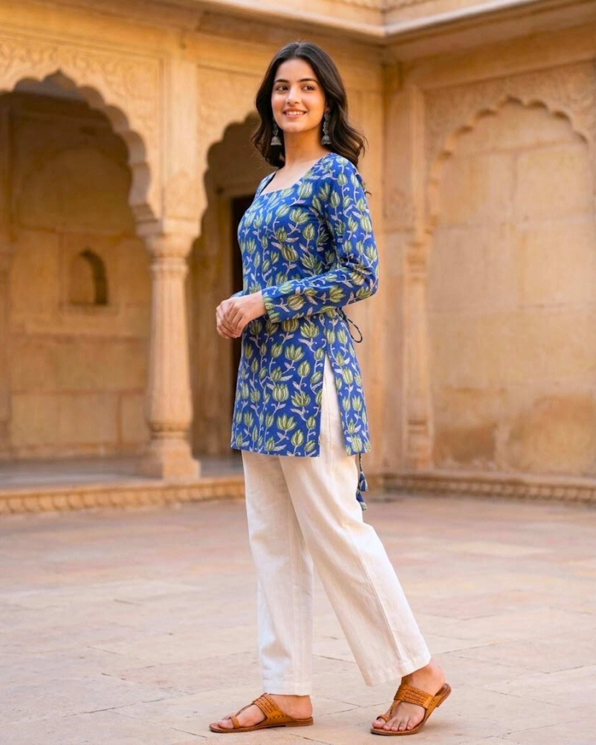 Chic, elegant, and effortlessly feminine ā this floral print kurti is the perfect blend of comfort and charm. Designed with a clean square neckline and full sleeves, it creates a sleek, flattering silhouette while keeping the look fresh and feminine. The soft fitted shape is elevated with corset back detail, finished with a straight hem and side slits. Sweet, modern, and endlessly wearable ā a standout piece for casual outings or festive moments